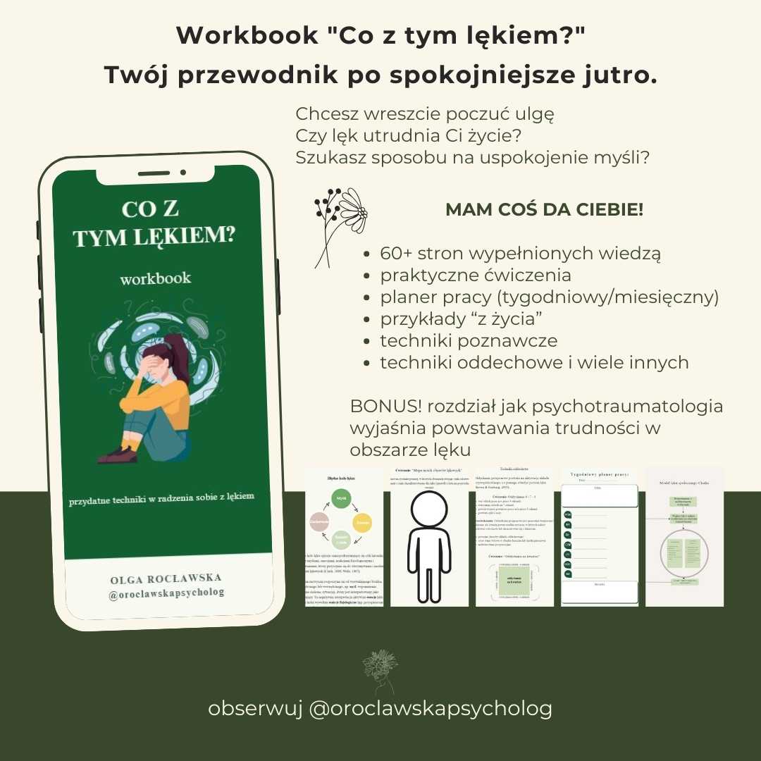 Workbook "Co z tym lękiem" to Twoje oparte na wiedzy narzędzie w walce z lękiem. Zamiast czuć się przytłoczonym statystykami, potraktuj je jako dowód na to, że Twój problem jest realny i że istnieje wiele osób, które z powodzeniem sobie z nim radzą. Ten workbook oferuje Ci praktyczne strategie i techniki oparte na dowiedzionej skuteczności, abyś mógł dołączyć do grona tych, którzy odzyskali kontrolę nad swoim życiem.